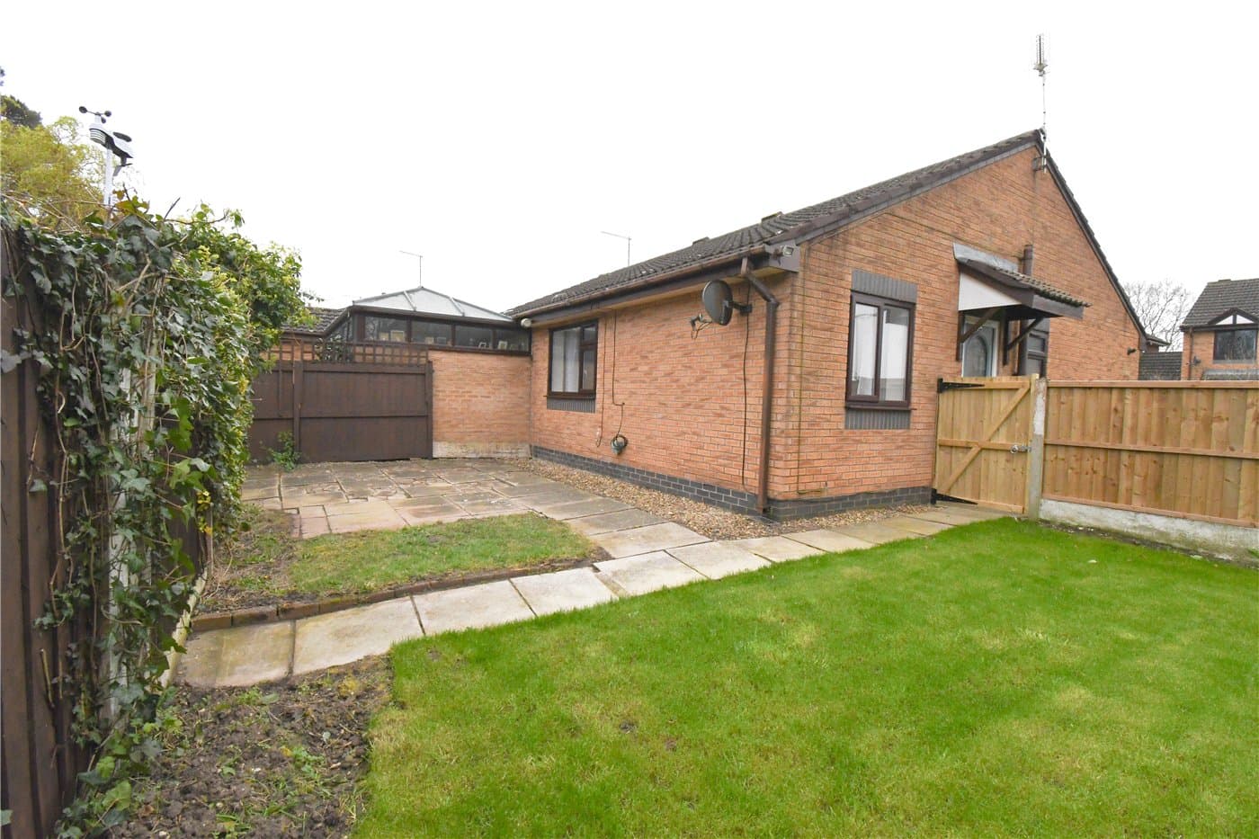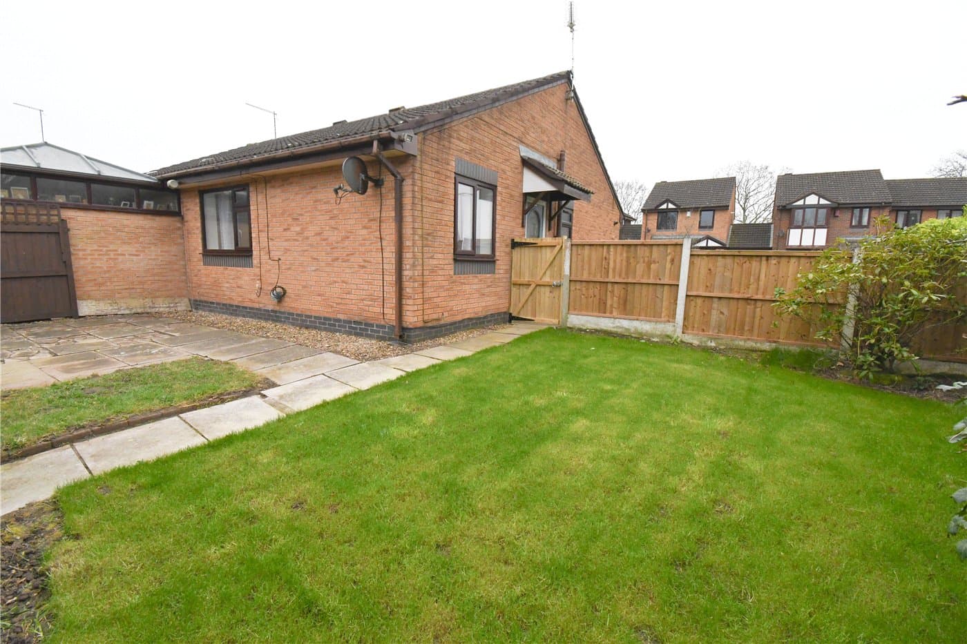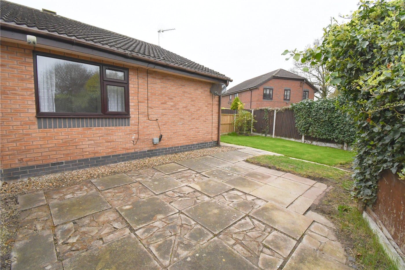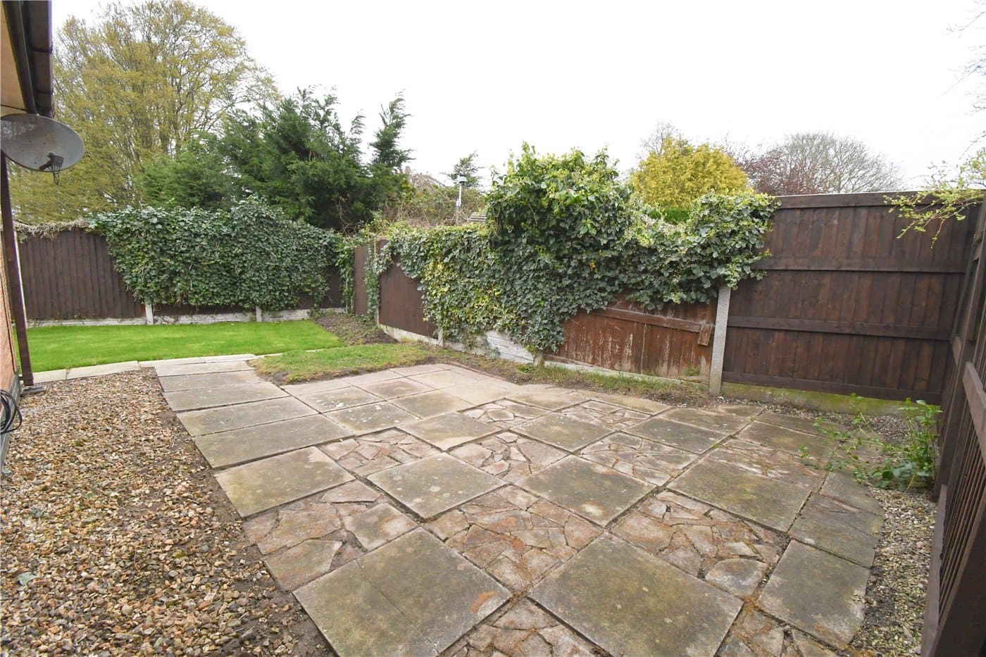 Rear garden with lawned and paved areas