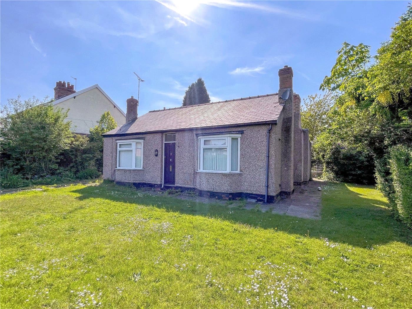 Detached bungalow on a 0.26-acre plot in Bromborough with no onward chain and planning permission for three houses. The property needs full modernisation and includes two bedrooms, three receptions, kitchen, bathroom, driveway and gardens – a superb development or renovation opportunity.