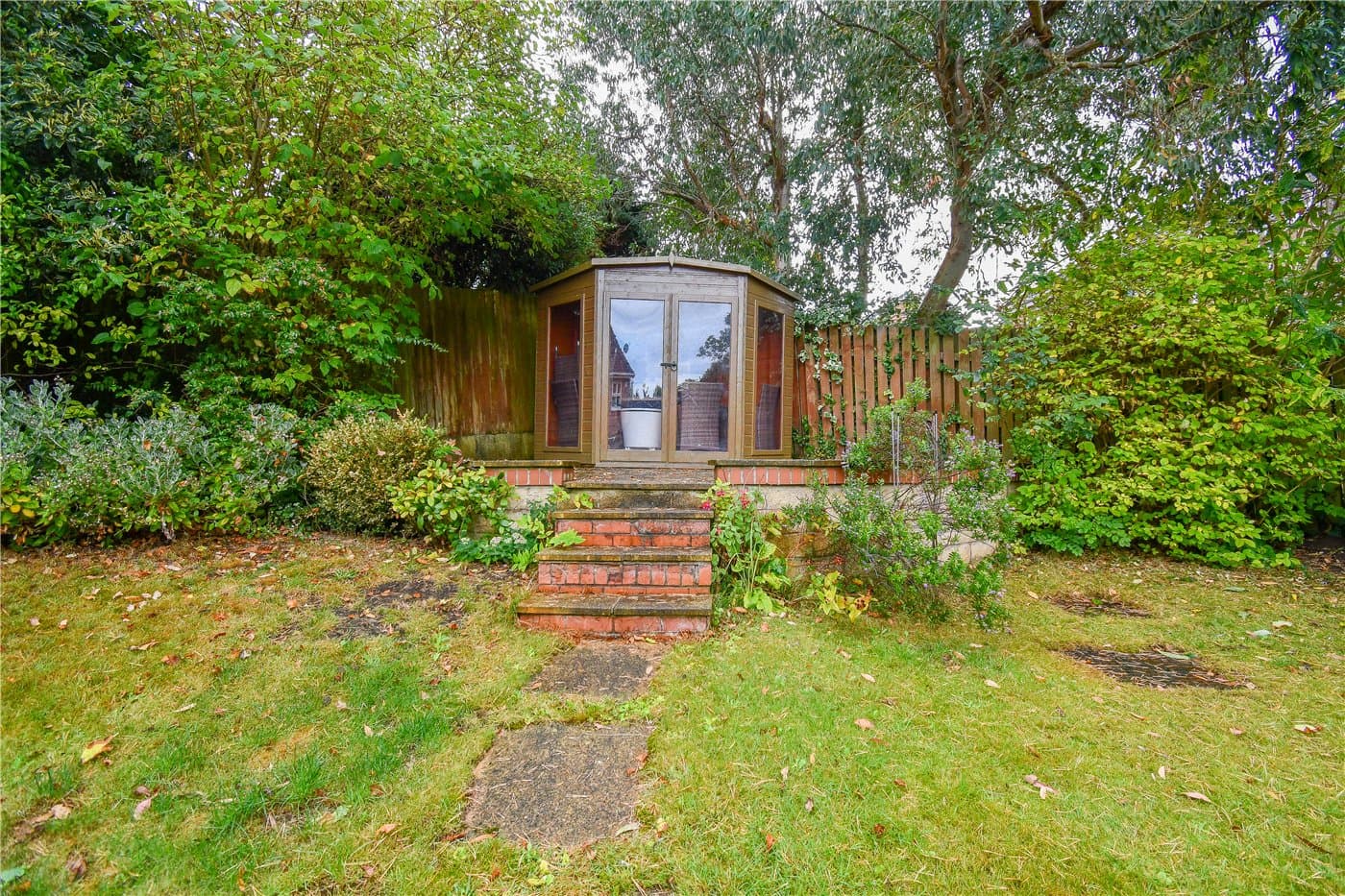Landscaped Rear Garden With Patio, Lawn And Summer House