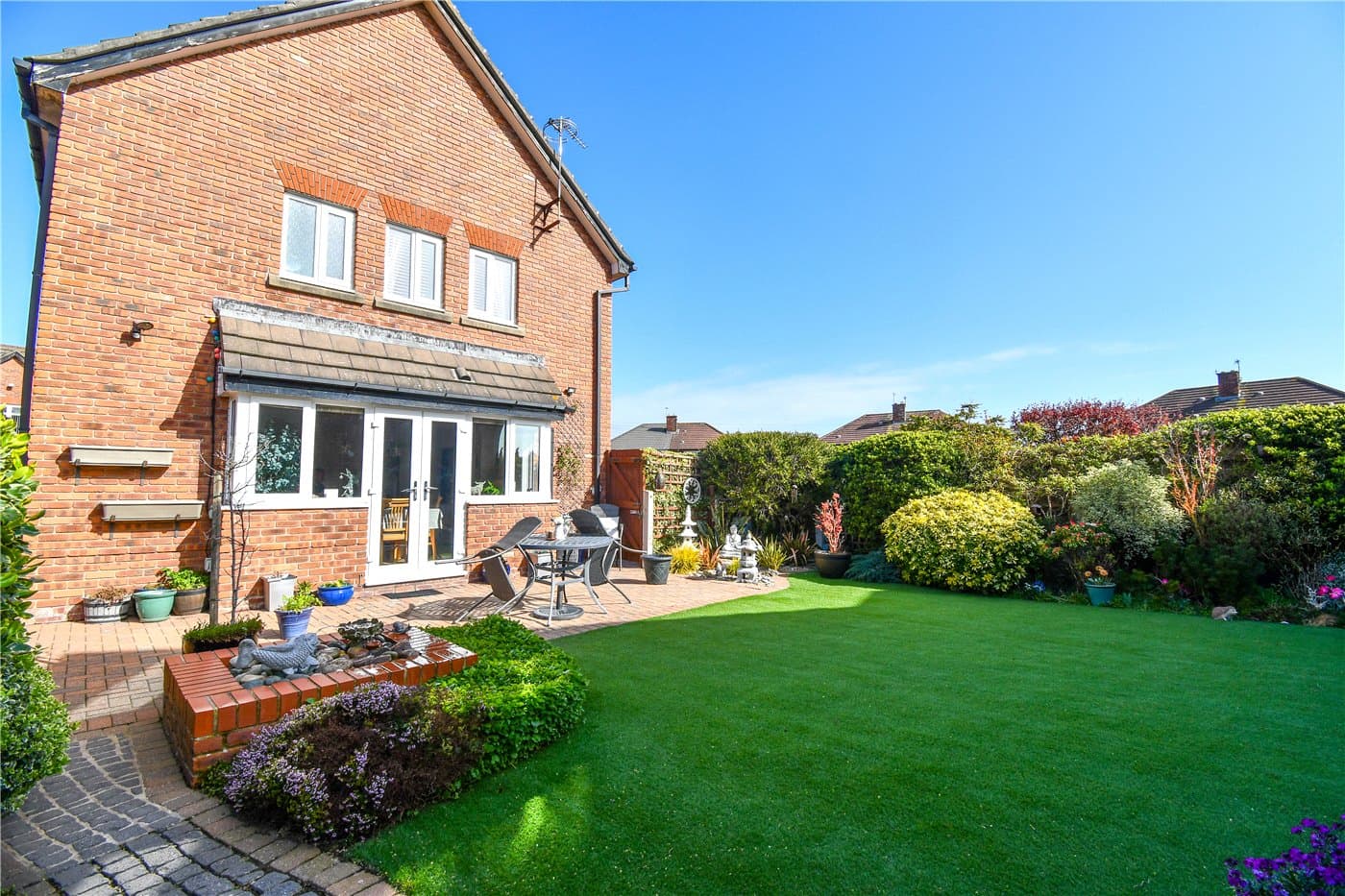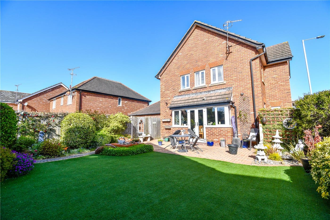 Immaculate detached family home with beautiful kerb appeal, set in a sought-after location close to shops, schools and transport links. Featuring a stunning open-plan kitchen/diner, spacious lounge with feature fire, four double bedrooms, beautiful gardens, double garage and large driveway.