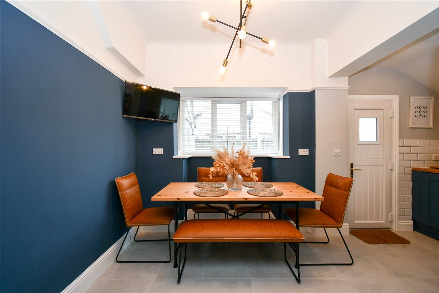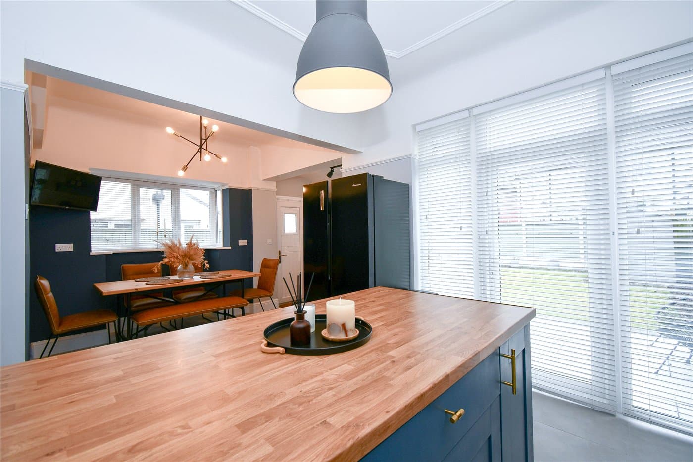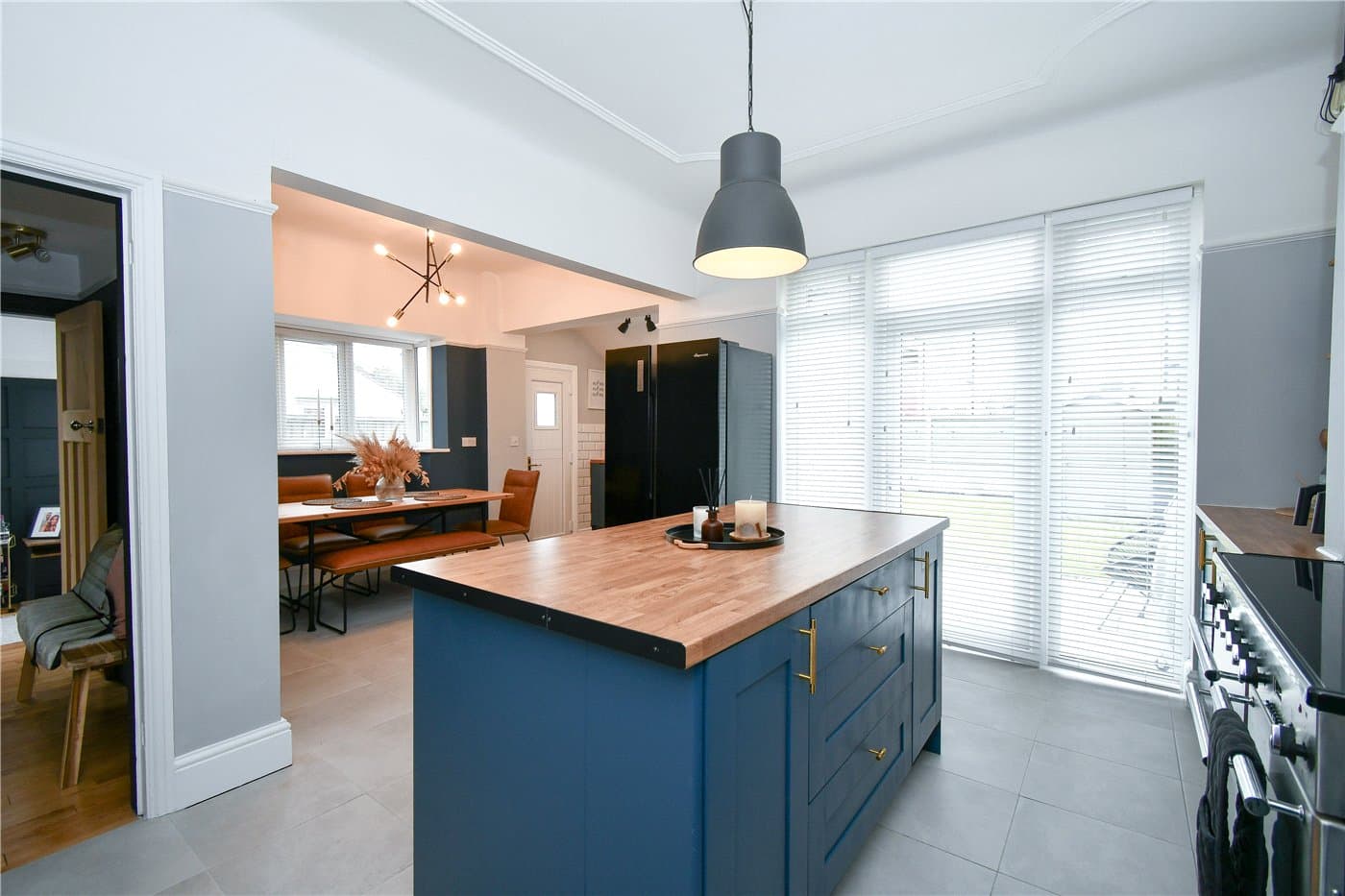 Open-plan kitchen dining area with underfloor heating