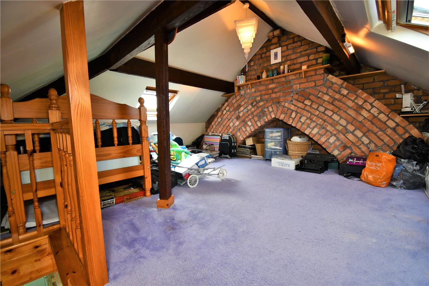 Boarded loft space with ladder