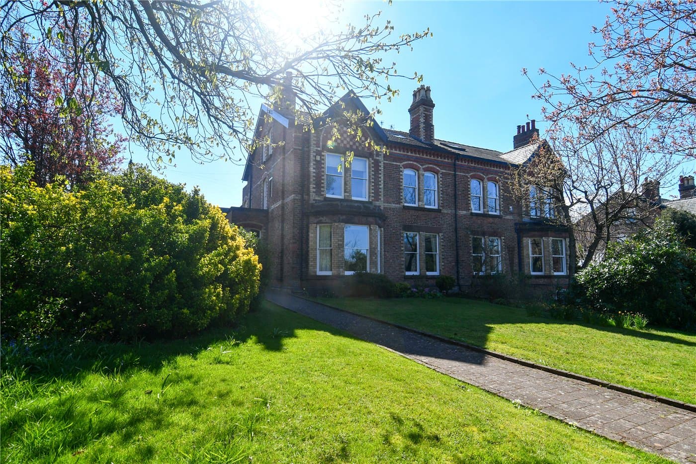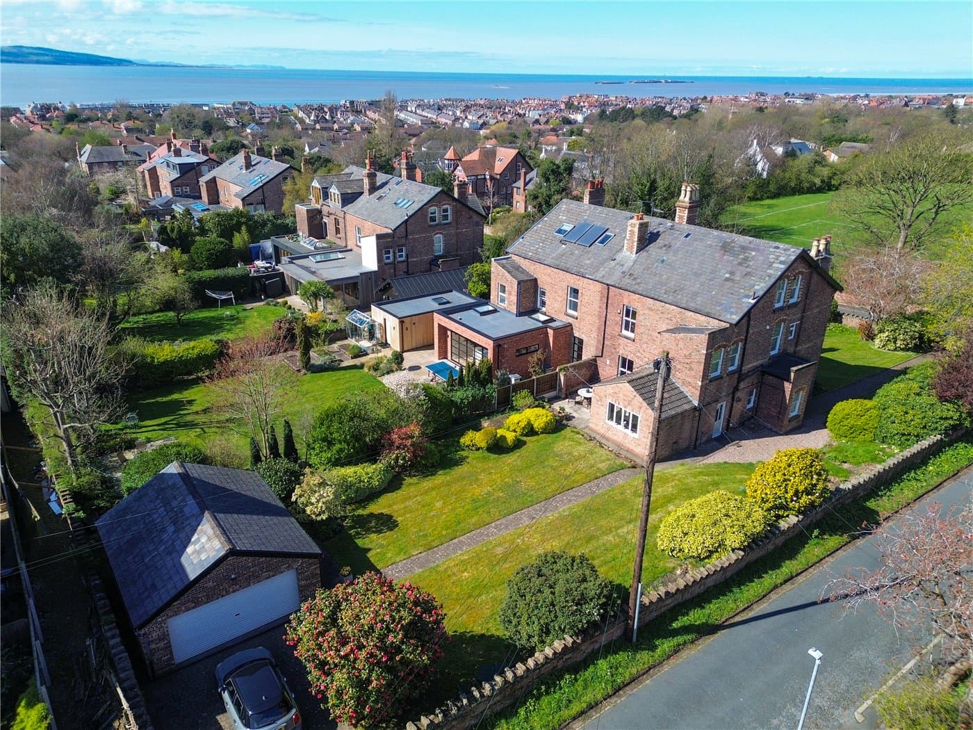 A superb Victorian semi-detached home set on one of West Kirby’s most sought-after roads. This elegant six-bedroom residence combines beautiful period features with generous family accommodation, extensive gardens and a detached garage with parking via Devonshire Road.