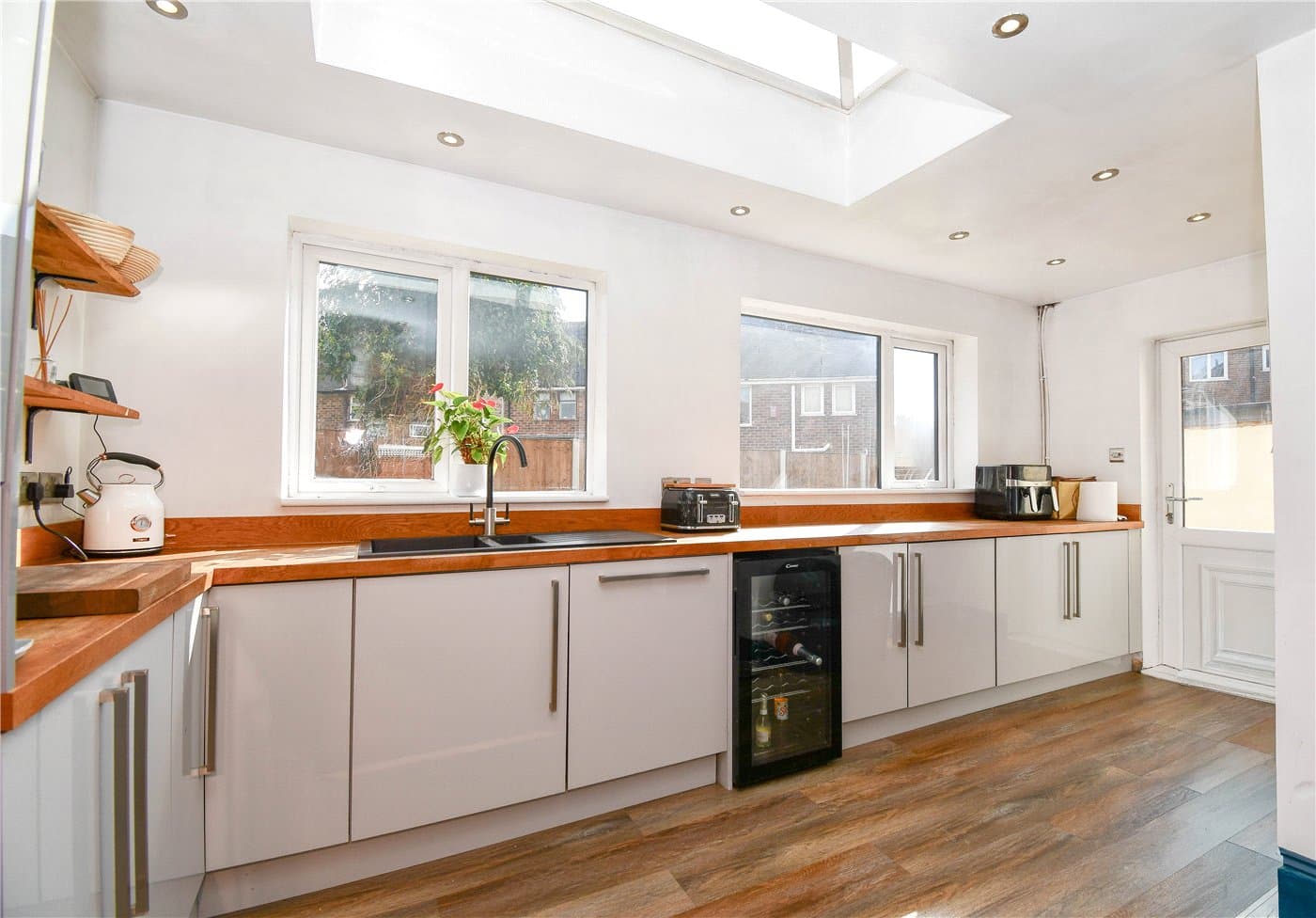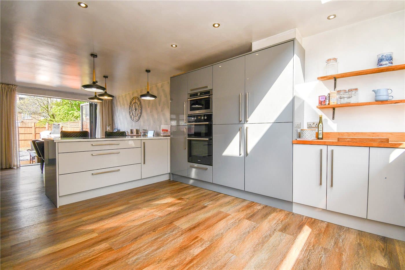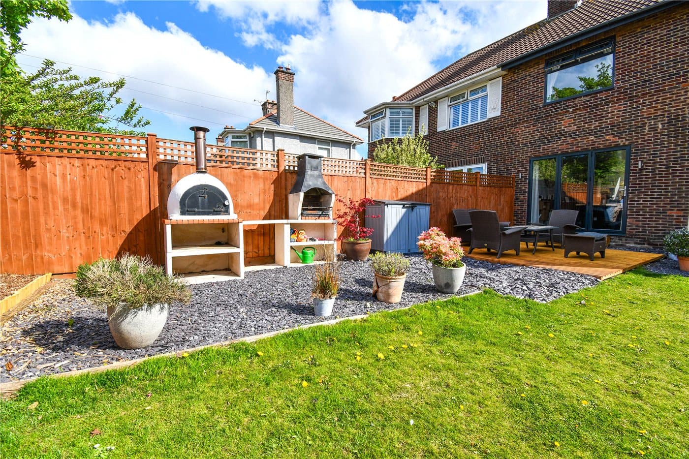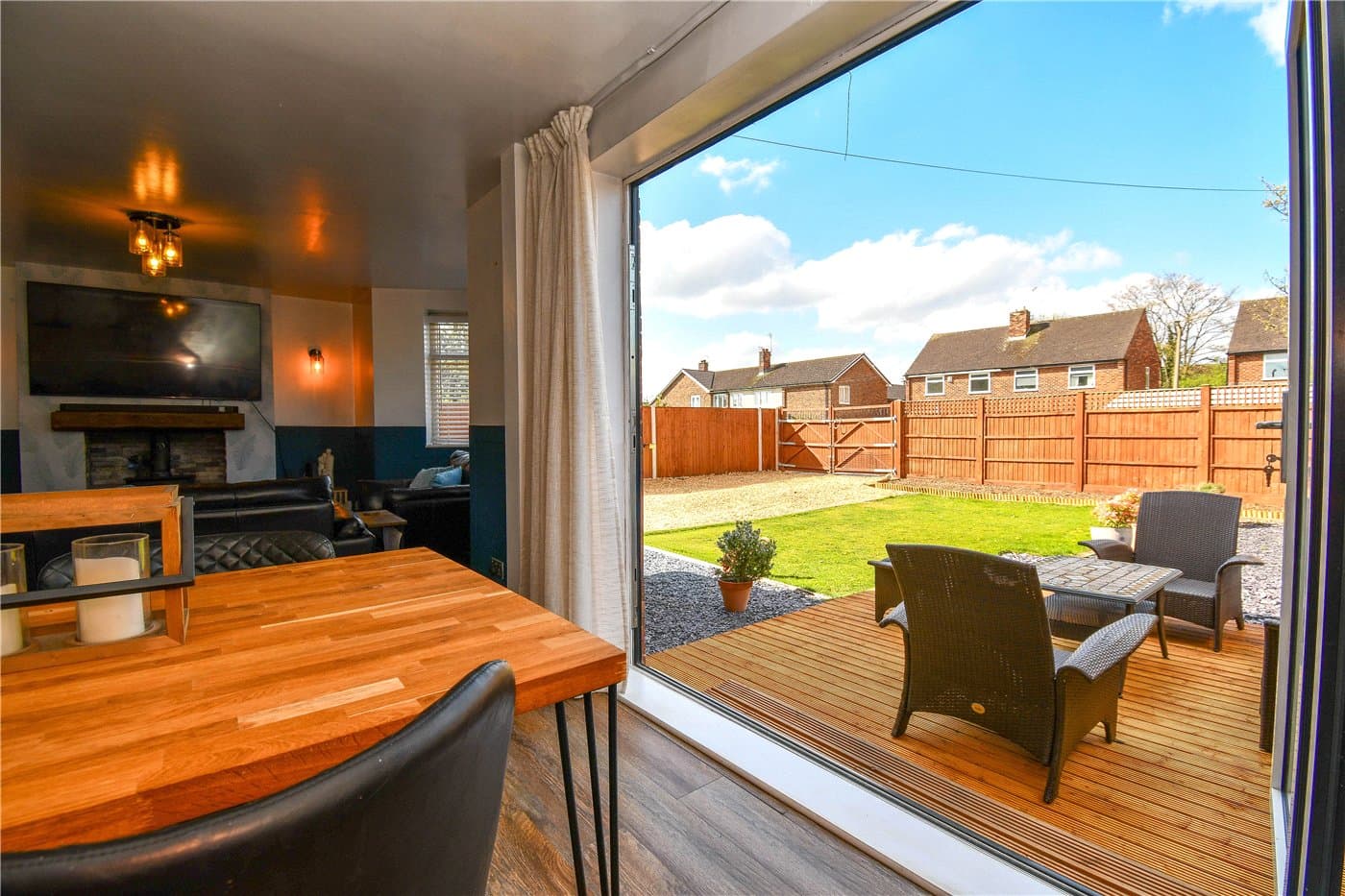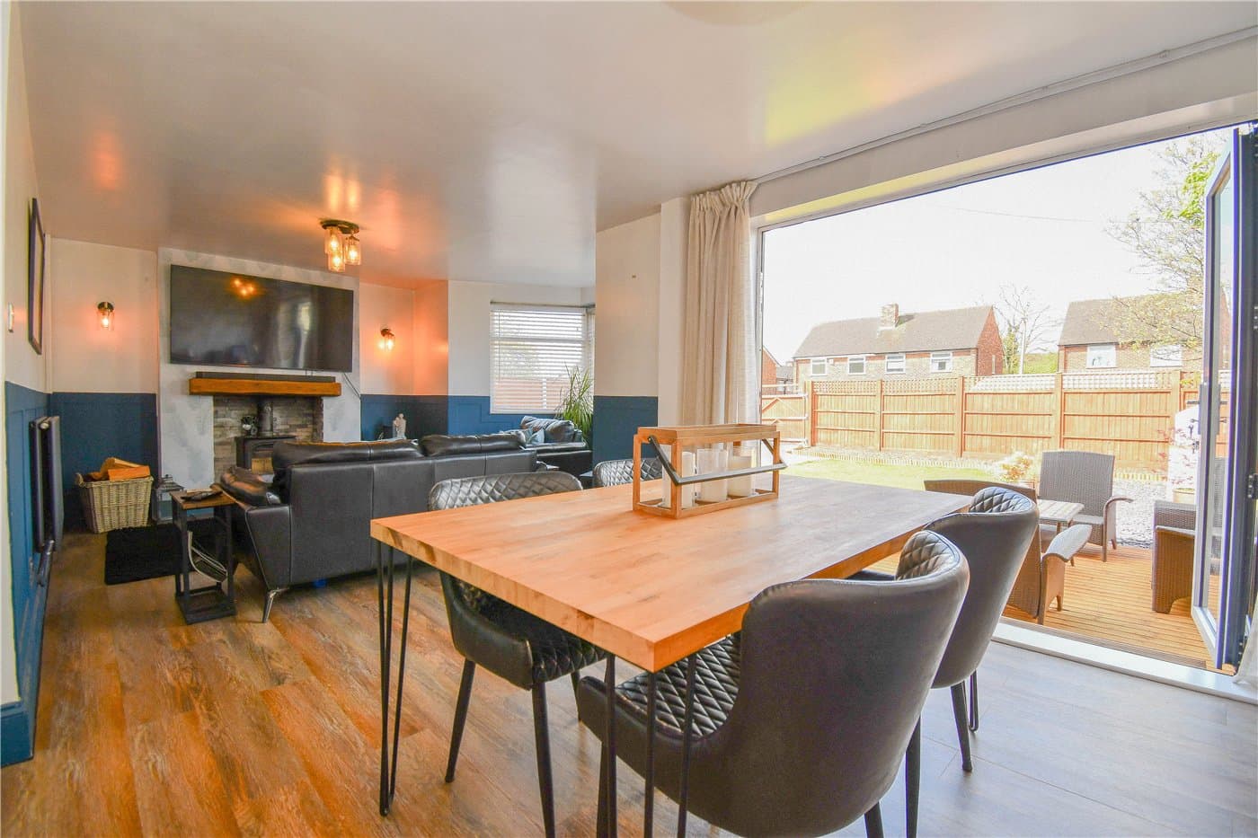 Beautifully presented semi-detached home with no onward chain, set on a quiet road close to amenities and schools. Open-plan living with log burner and bi-fold doors, three bedrooms, modern kitchen, large driveway, garage, and generous garden with decking and BBQ area.