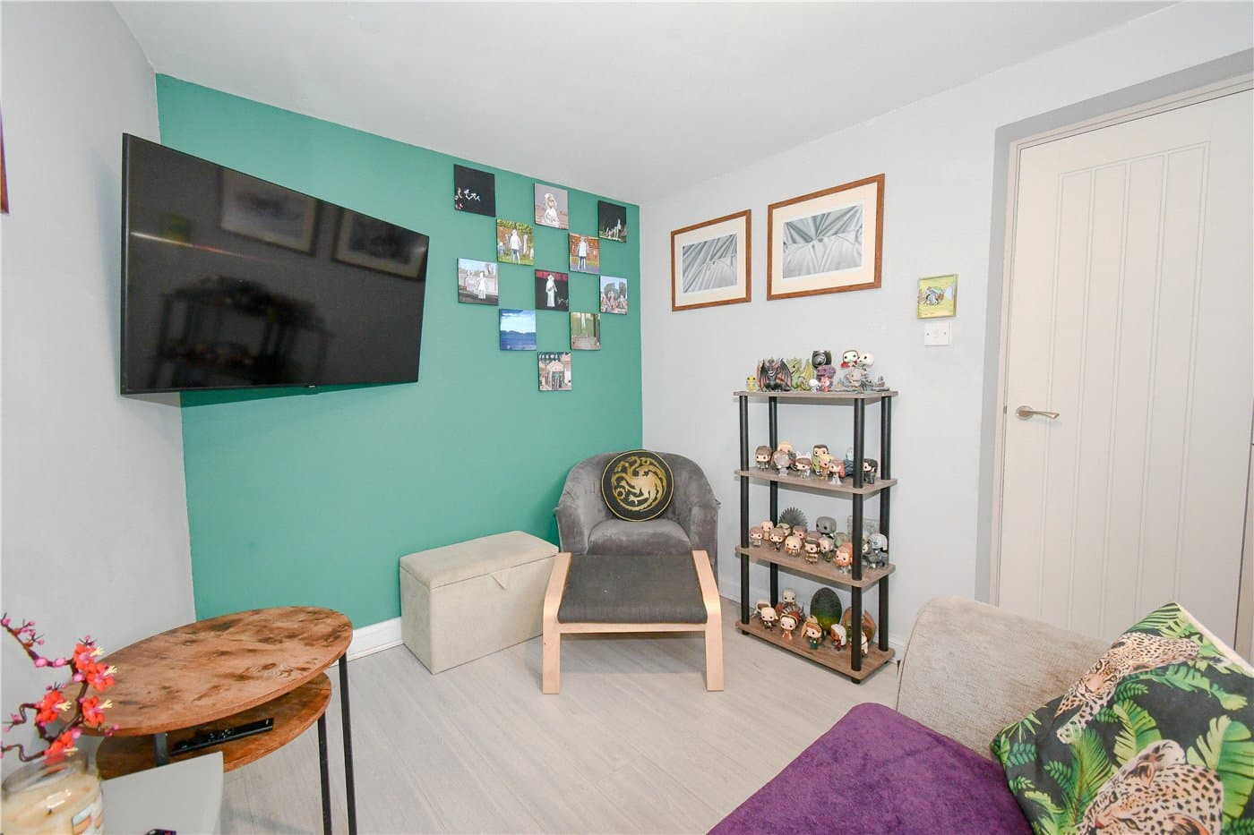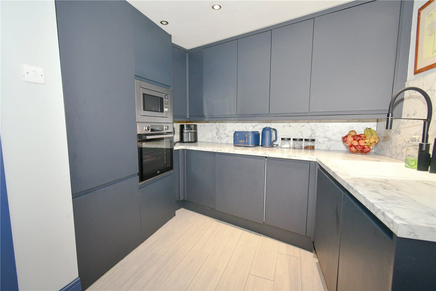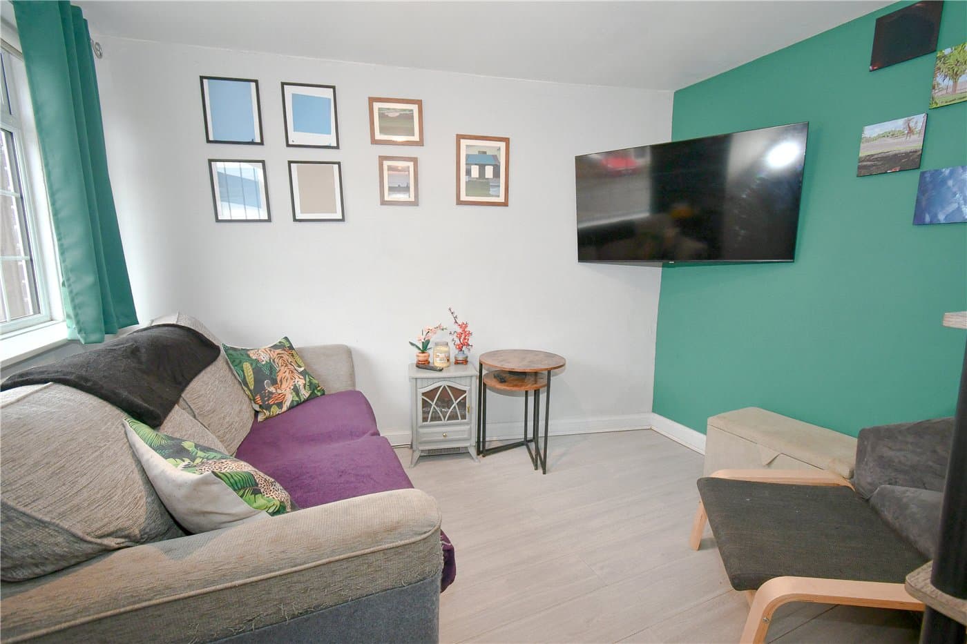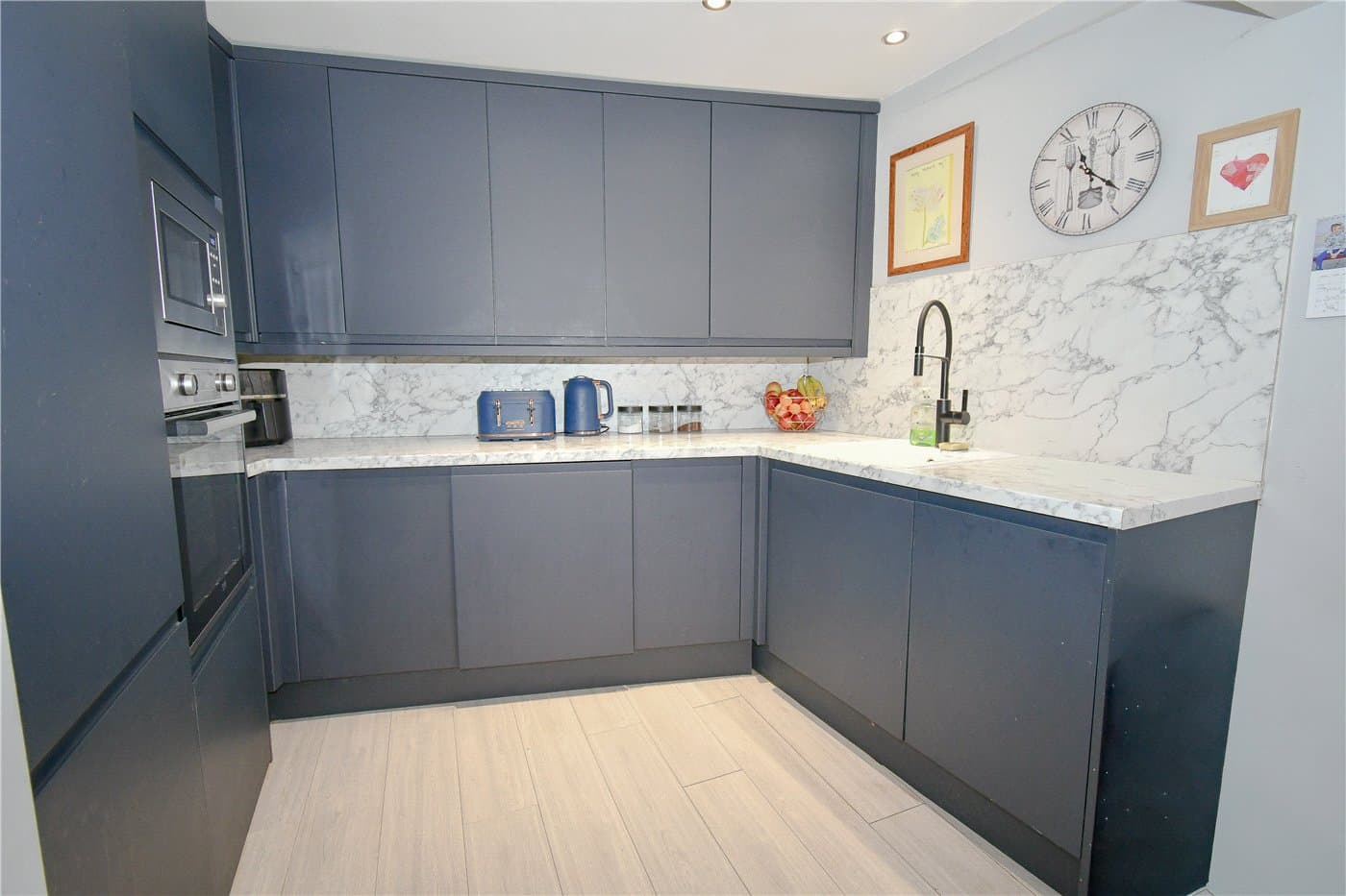 An extended detached home at the end of the cul-de-sac, offering two reception rooms, an open-plan kitchen with island and bi-fold doors, three bedrooms and a family bathroom, plus driveway parking and a lawned rear garden with decked patio areas, close to amenities, transport links and schools.