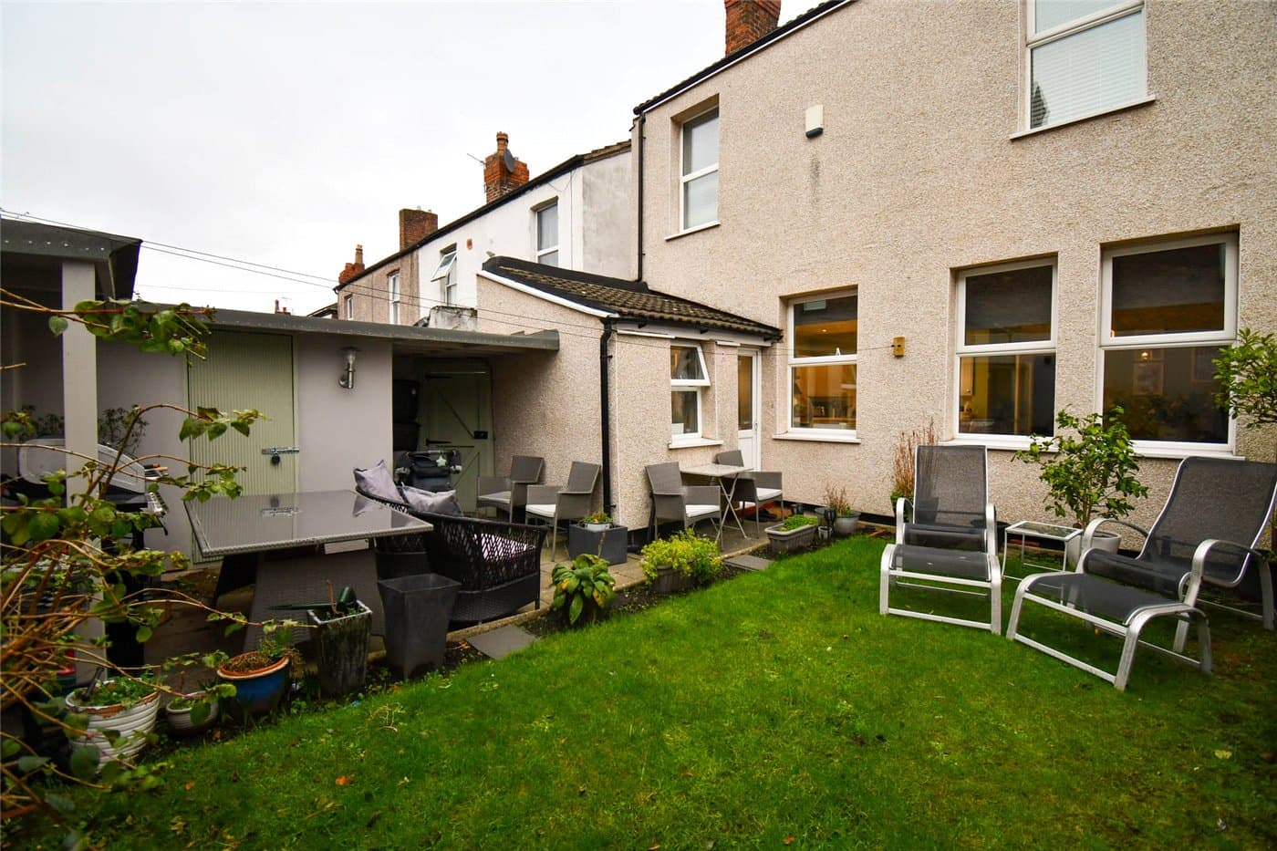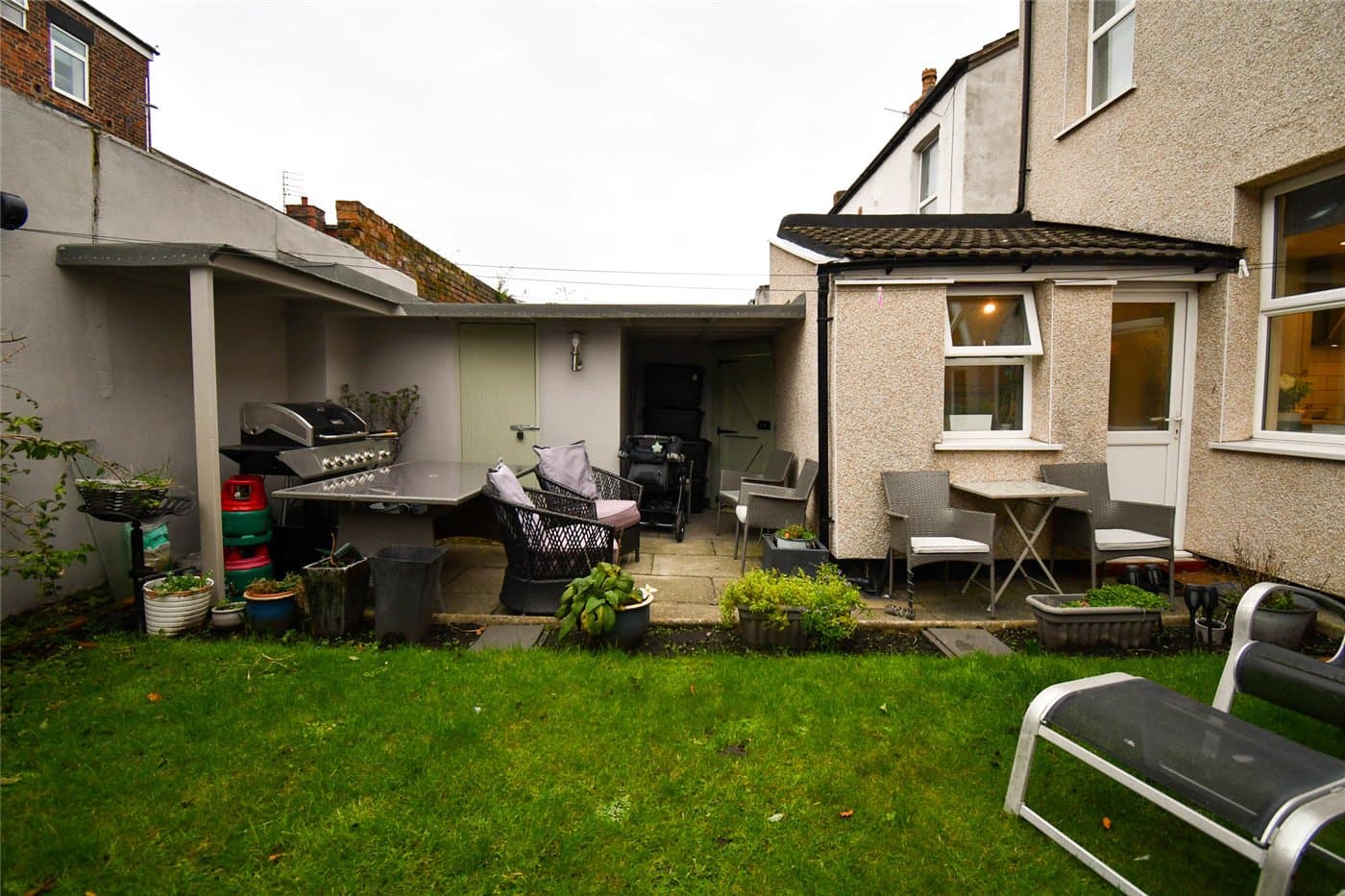 Garden with storage and covered BBQ area