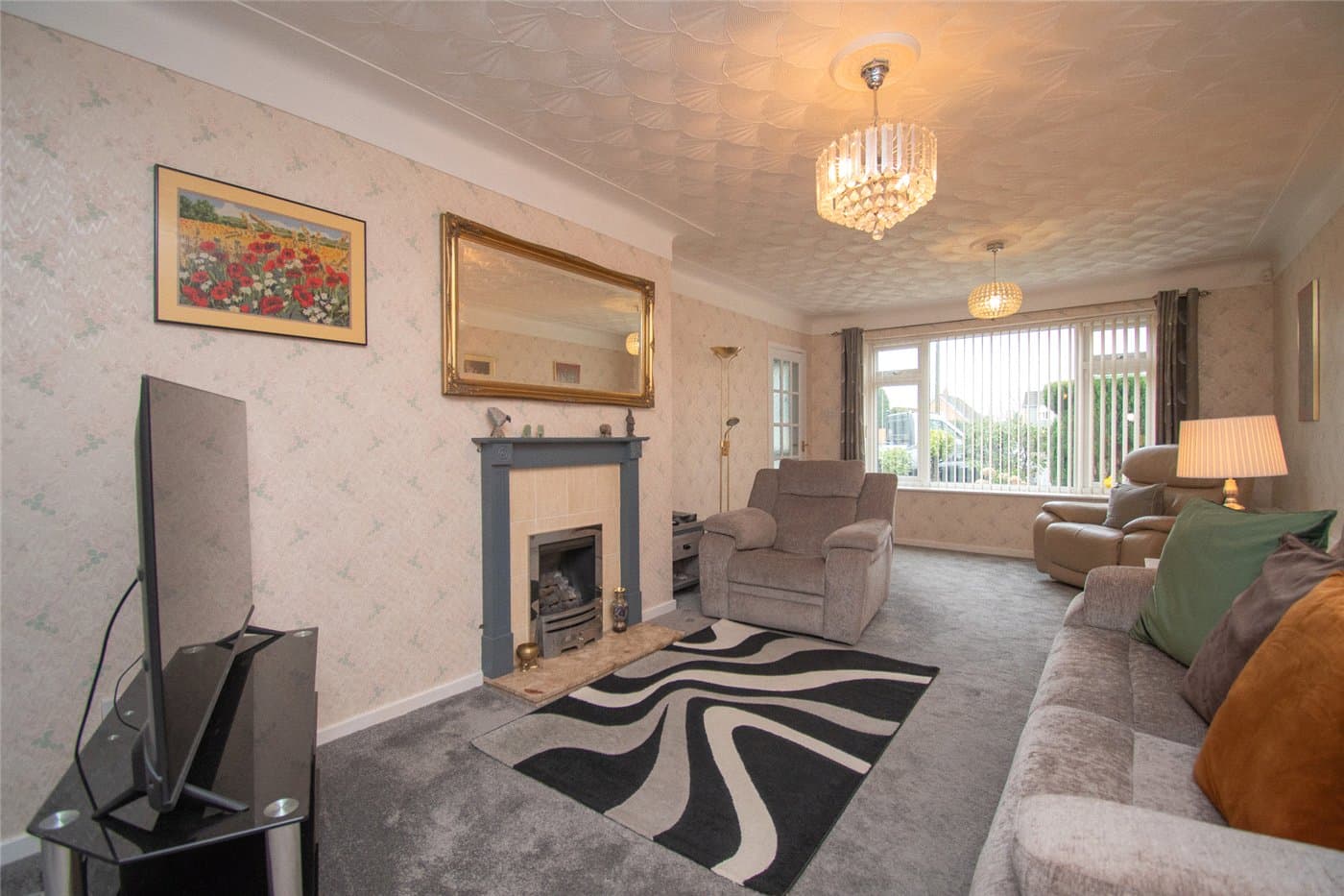 Through Living Room With Feature Fireplace