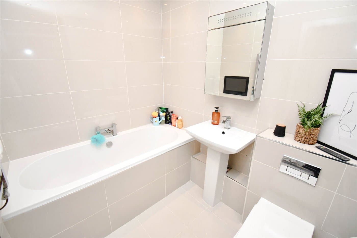Bathroom with built in TV